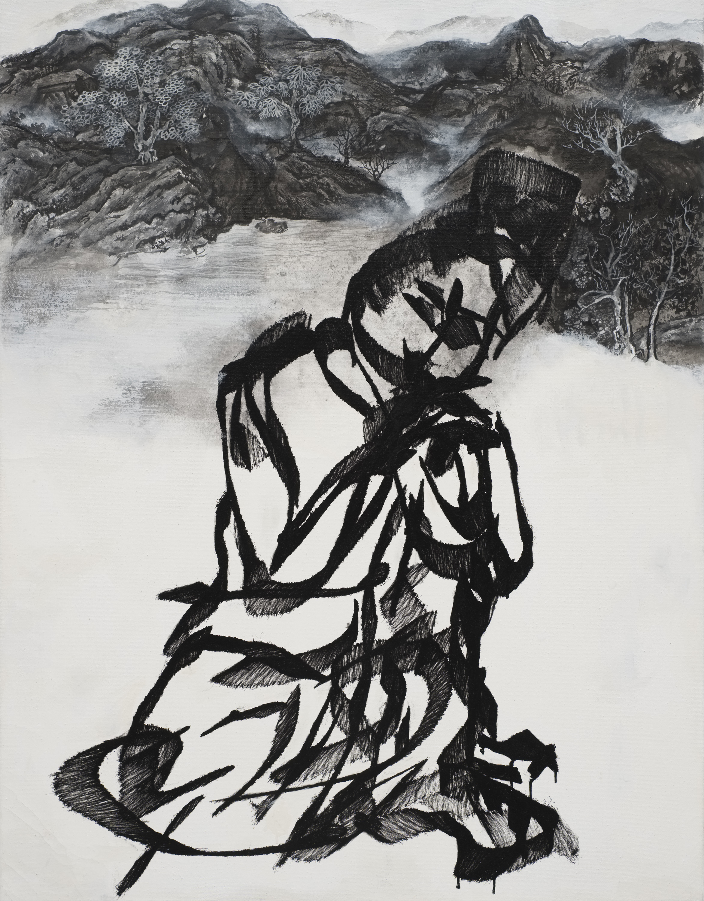 墨汁、壓克力彩、碳酸鈣打底劑/畫布